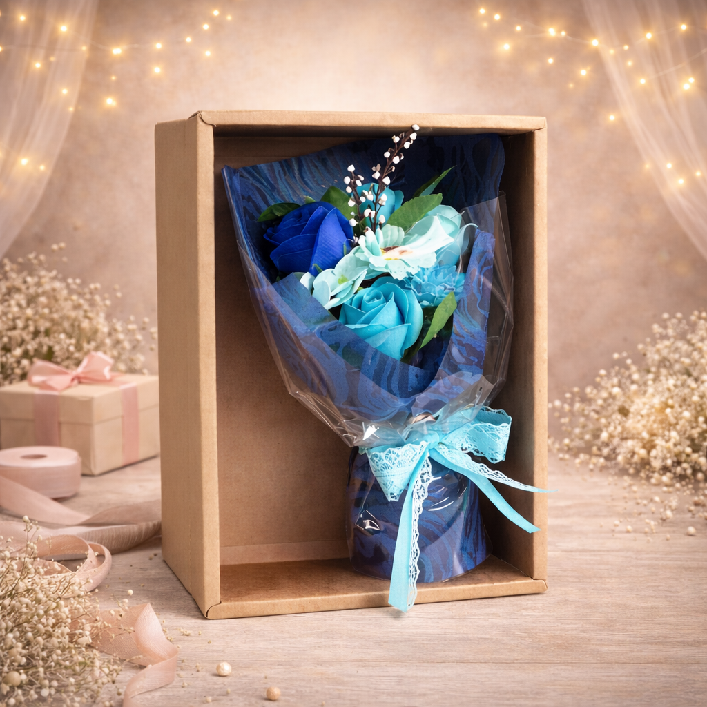 Handseifen-Blumenstrauß in einer Schachtel – Blau