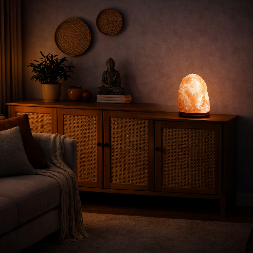 Himalaya-Salzlampen werden traditionell in Umgebungen der Achtsamkeit eingesetzt und sollen eine ruhigere, ausgeglichenere Atmosphäre schaffen , insbesondere in Räumen, die von moderner Elektronik beeinflusst sind. Im eingeschalteten Zustand verströmen sie ein tiefes, warmes Bernsteinlicht, das Abendrituale und Momente der Stille bereichert.