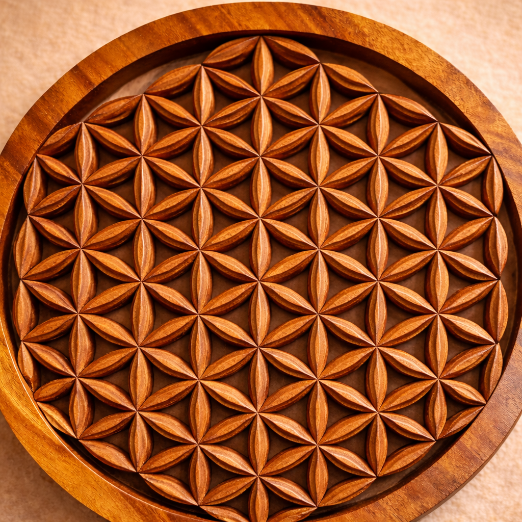 Rundes dekoratives Holzpaneel mit Lebensblume-Motiv
