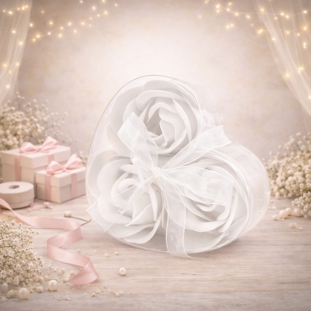 3er-Set Seifenblumen-Herzboxen – Weiß
