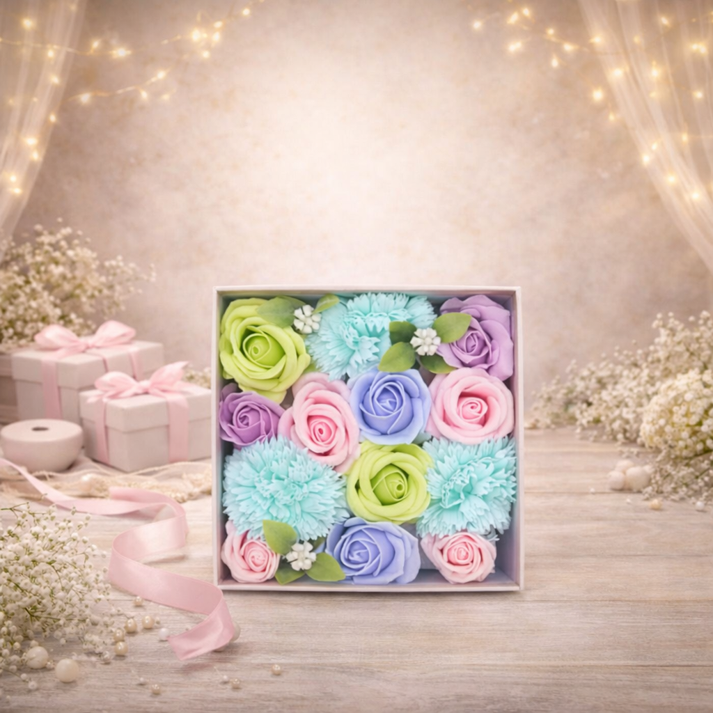 Schlicht, modern und vielseitig kombinierbar: Diese Geschenkboxen aus Seifenblumen verleihen jedem Anlass eine liebevolle und elegante Note. Ein dezenter, aber bleibender visueller Eindruck – perfekt zum Verschenken.